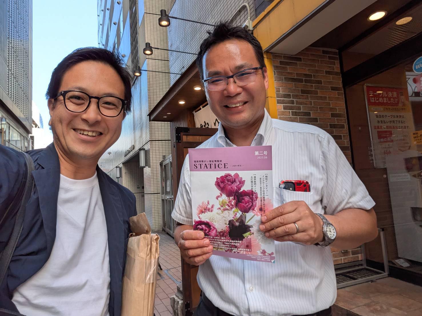 (株)Whomlabの西代表にフリーペーパーSTATICE第2号をお届けしました。